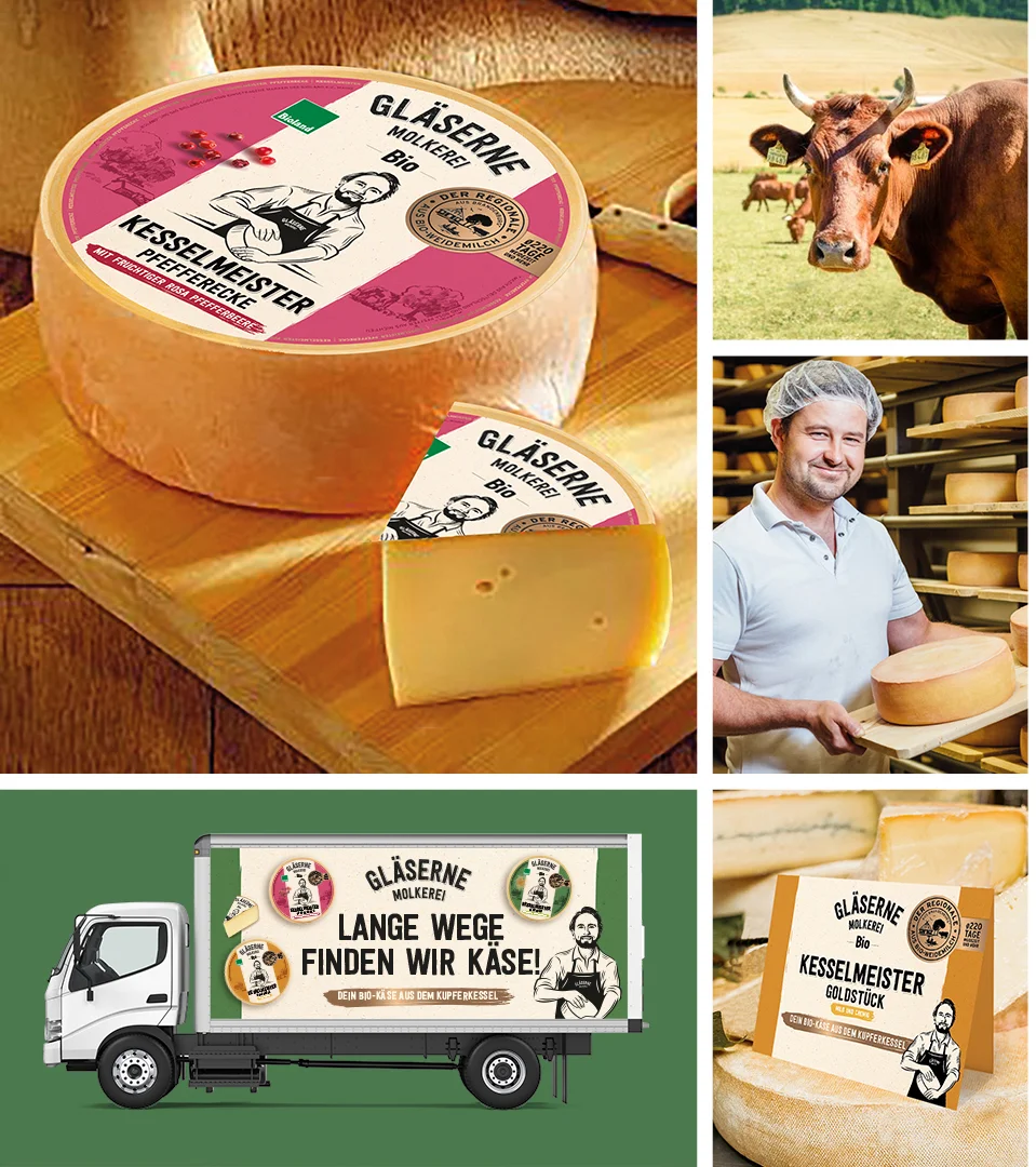 “Cheesemaster”. The so-called “Kesselmeister” gives the cheese range of the “Gläserne Molkerei” an unmistakable brand identity.